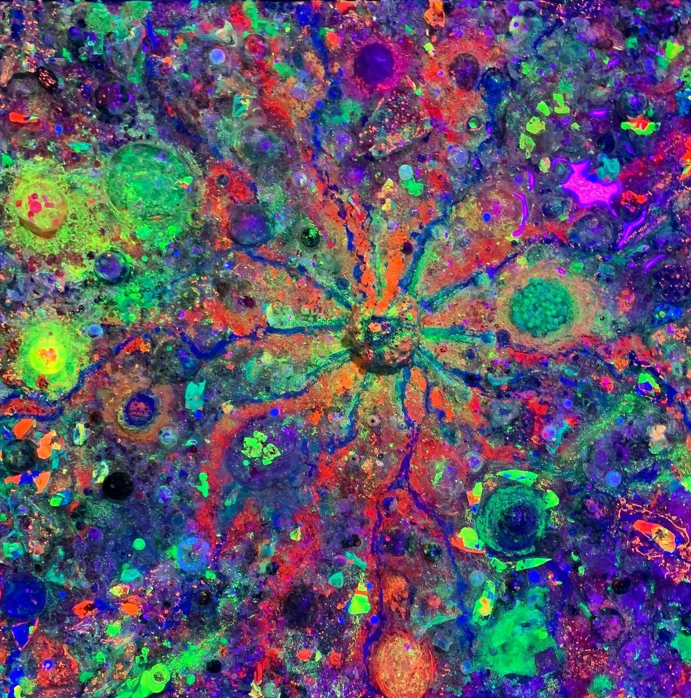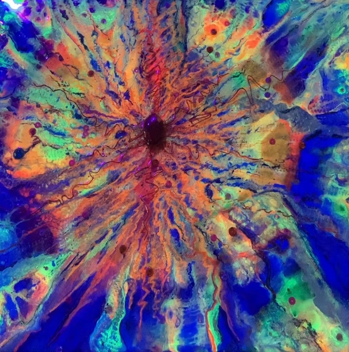 Julia's artwork captivates with it's dual personalities, universal flow and vivid contrasts creating a hypnotic interplay of energy and movement.