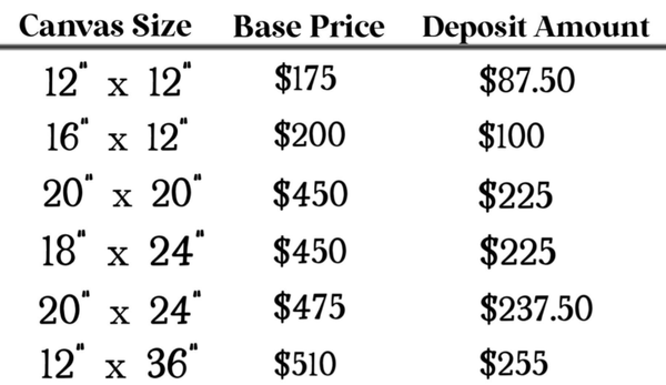 • Initial complimentary consultation to discuss your concept, colour palette, size preferences, and any additional mixed media requests you may have.
